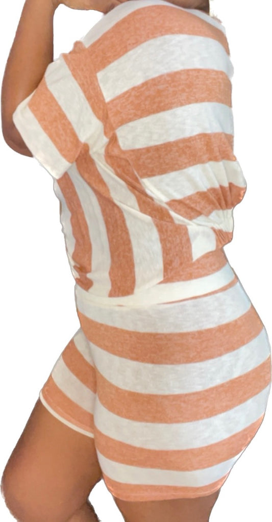 Rust Striped Lounging Set